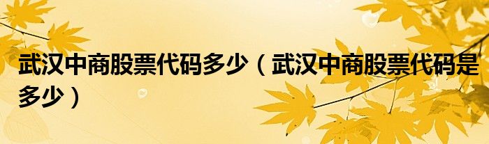 大家好,综合小编来为大家讲解下。武汉中商股票代码多少,武汉中商股票代码是多少这个很多人还不知道,现在让我们一起来看看吧!