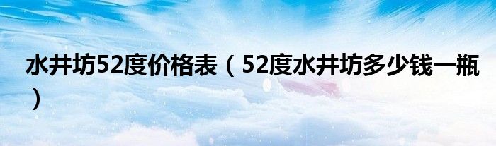 大家好,综合小编来为大家讲解下。水井坊52度价格表,52度水井坊多少钱一瓶这个很多人还不知道,现在让我们一起来看看吧!