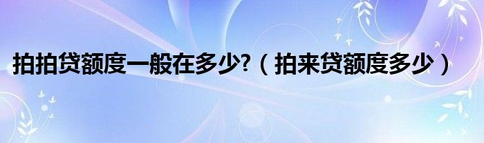 大家好,综合小编来为大家讲解下。拍拍贷额度一般在多少?,拍来贷额度多少这个很多人还不知道,现在让我们一起来看看吧!