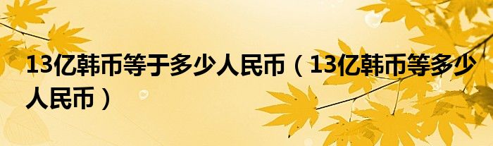 导读 大家好,综合小编来为大家讲解下。13亿韩币等于多少人民币,13亿韩币等多少人民币这个很多人还不知道,现在让我们一起来看看吧!1300000000韩