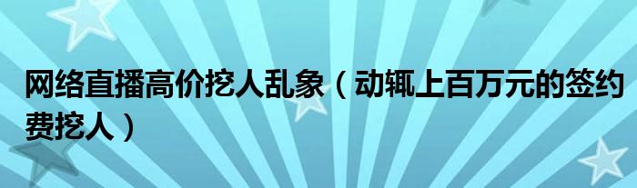 大家好,综合小编来为大家讲解下。网络直播高价挖人乱象,动辄上百万元的签约费挖人这个很多人还不知道,现在让我们一起来看看吧!