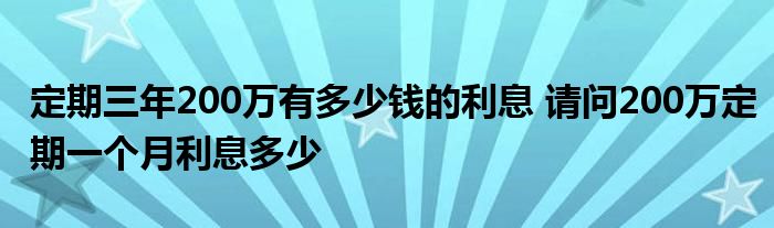 导读 大家好,小呗来为大家解答以上的问题定期三年200万有多少钱的利息,请问200万定期一个月利息多少这个很多人还不知道,现在让我们一起来了解下