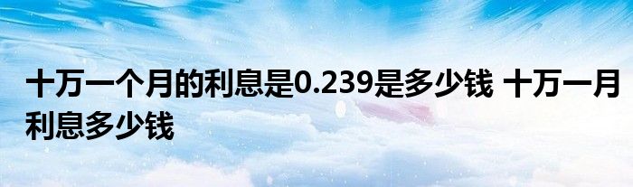 导读 大家好,小呗来为大家解答以上的问题十万一个月的利息是0 239是多少钱,十万一月利息多少钱这个很多人还不知道,现在让我们一起来了解下吧!