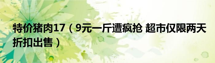 导读 大家好,综合小编来为大家讲解下。特价猪肉17,9元一斤遭疯抢 超市仅限两天折扣出售这个很多人还不知道,现在让我们一起来看看吧!1、近期,