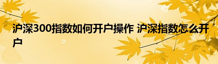 导读 大家好,小元来为大家解答问题。沪深300指数如何开户操作,沪深指数怎么开户,这个很多人还不知道,现在让我们一起来了解下吧!