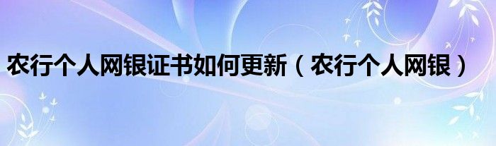 导读 大家好,小卡来为大家解答以上问题。农行个人网银证书如何更新,农行个人网银很多人还不知道,现在让我们一起来看看吧!