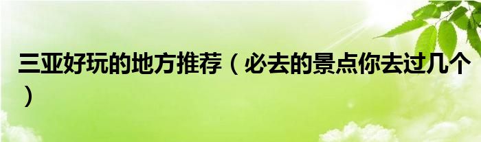 大家好,综合小编来为大家讲解下。三亚好玩的地方推荐,必去的景点你去过几个这个很多人还不知道,现在让我们一起来看看吧!