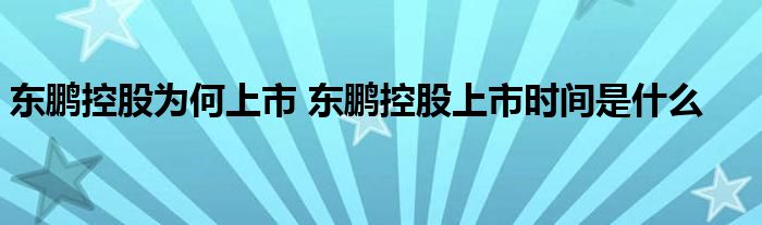 导读 大家好,小元来为大家解答问题。东鹏控股为何上市,东鹏控股上市时间是什么,这个很多人还不知道,现在让我们一起来了解下吧!