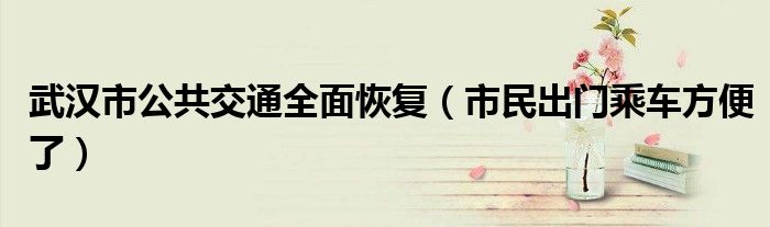 大家好,综合小编来为大家讲解下。武汉市公共交通全面恢复,市民出门乘车方便了这个很多人还不知道,现在让我们一起来看看吧!