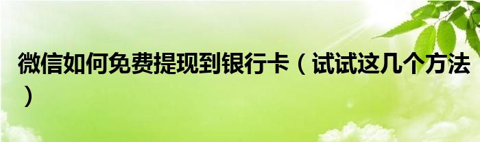 大家好,综合小编来为大家讲解下。微信如何免费提现到银行卡,试试这几个方法这个很多人还不知道,现在让我们一起来看看吧!