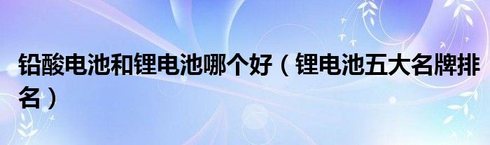 大家好,综合小编来为大家讲解下。铅酸电池和锂电池哪个好,锂电池五大名牌排名这个很多人还不知道,现在让我们一起来看看吧!