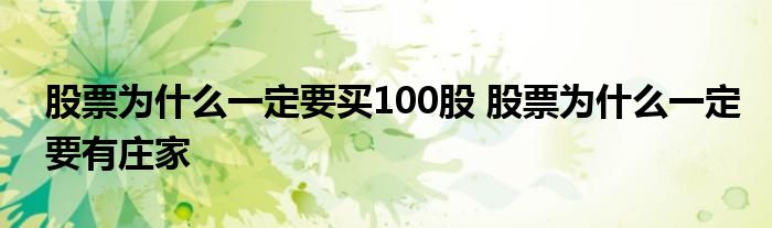 导读 大家好,小元来为大家解答问题。股票为什么一定要买100股,股票为什么一定要有庄家,这个很多人还不知道,现在让我们一起来了解下吧!