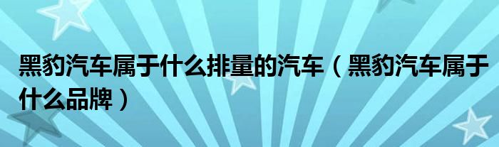 大家好,综合小编来为大家讲解下。黑豹汽车属于什么排量的汽车,黑豹汽车属于什么品牌这个很多人还不知道,现在让我们一起来看看吧!
