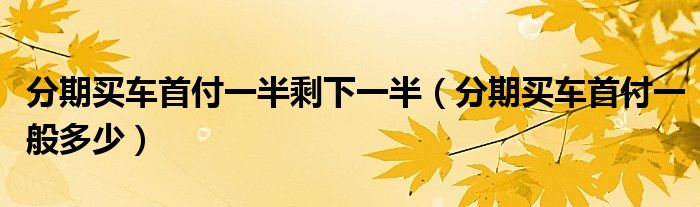 导读 大家好,综合小编来为大家讲解下。分期买车首付一半剩下一半,分期买车首付一般多少这个很多人还不知道,现在让我们一起来看看吧!1、汽车购