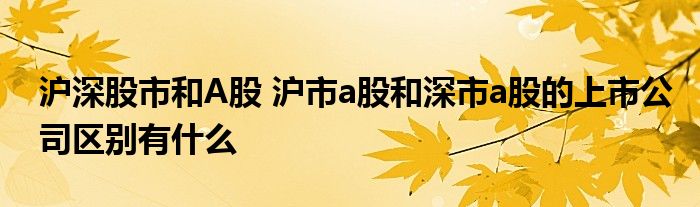 导读 大家好,小元来为大家解答问题。沪深股市和A股,沪市a股和深市a股的上市公司区别有什么,这个很多人还不知道,现在让我们一起来了解下吧!