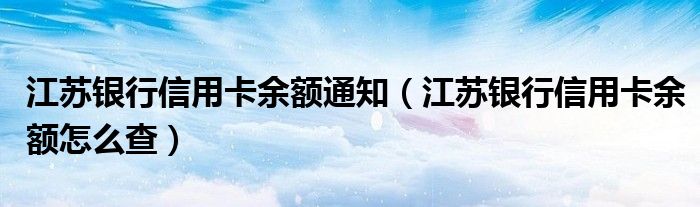 大家好,综合小编来为大家讲解下。江苏银行信用卡余额通知,江苏银行信用卡余额怎么查这个很多人还不知道,现在让我们一起来看看吧!