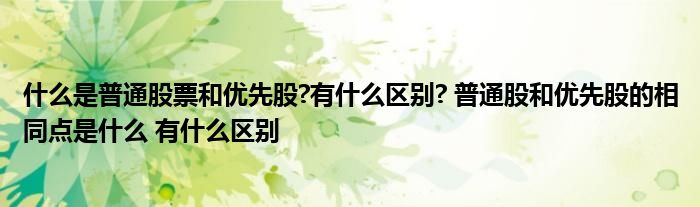导读 大家好,小元来为大家解答问题。什么是普通股票和优先股?有什么区别?,普通股和优先股的相同点是什么,有什么区别,这个很多人还不知道,现