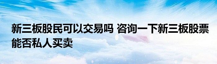 导读 大家好,小元来为大家解答问题。新三板股民可以交易吗,咨询一下新三板股票能否私人买卖,这个很多人还不知道,现在让我们一起来了解下吧!