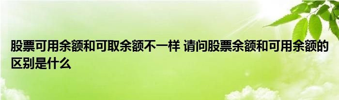 导读 大家好,小元来为大家解答问题。股票可用余额和可取余额不一样,请问股票余额和可用余额的区别是什么,这个很多人还不知道,现在让我们一起