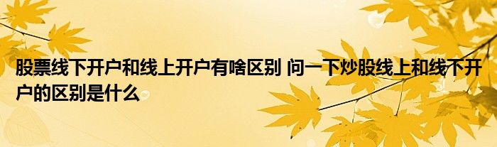 导读 大家好,小元来为大家解答问题。股票线下开户和线上开户有啥区别,问一下炒股线上和线下开户的区别是什么,这个很多人还不知道,现在让我们