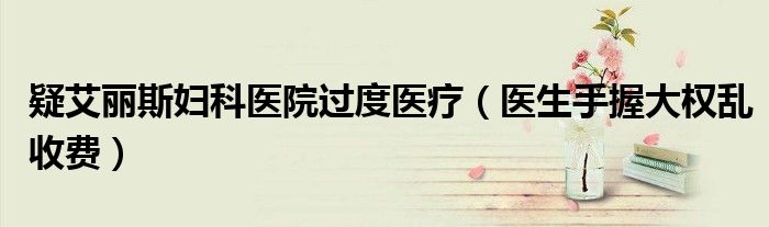 大家好,综合小编来为大家讲解下。疑艾丽斯妇科医院过度医疗,医生手握大权乱收费这个很多人还不知道,现在让我们一起来看看吧!