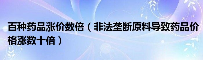 大家好,综合小编来为大家讲解下。百种药品涨价数倍,非法垄断原料导致药品价格涨数十倍这个很多人还不知道,现在让我们一起来看看吧!