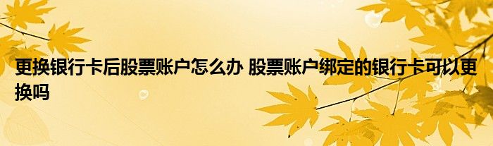 导读 大家好,小元来为大家解答问题。更换银行卡后股票账户怎么办,股票账户绑定的银行卡可以更换吗这个很多人还不知道,现在让我们一起来了解下