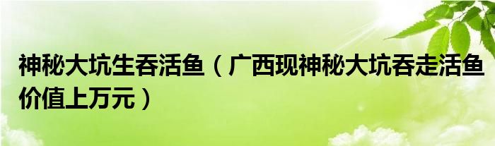 大家好,综合小编来为大家讲解下。神秘大坑生吞活鱼,广西现神秘大坑吞走活鱼价值上万元这个很多人还不知道,现在让我们一起来看看吧!