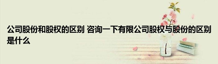 导读 大家好,小元来为大家解答问题。公司股份和股权的区别,咨询一下有限公司股权与股份的区别是什么,这个很多人还不知道,现在让我们一起来了