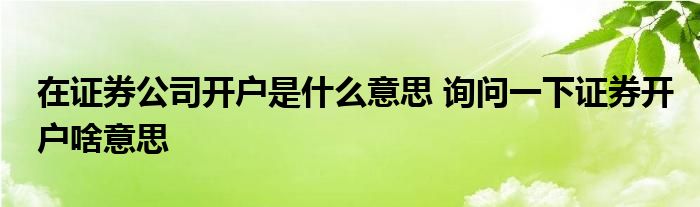 导读 大家好,小元来为大家解答问题。在证券公司开户是什么意思,询问一下证券开户啥意思,这个很多人还不知道,现在让我们一起来了解下吧!
