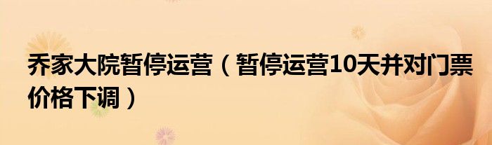 大家好,综合小编来为大家讲解下。乔家大院暂停运营,暂停运营10天并对门票价格下调这个很多人还不知道,现在让我们一起来看看吧!