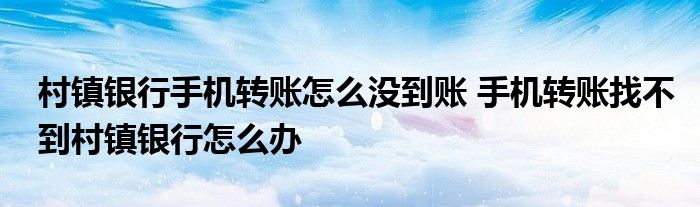 导读 大家好,小呗来为大家解答以上的问题村镇银行手机转账怎么没到账,手机转账找不到村镇银行怎么办这个很多人还不知道,现在让我们一起来了解下