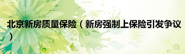 大家好,综合小编来为大家讲解下。北京新房质量保险,新房强制上保险引发争议这个很多人还不知道,现在让我们一起来看看吧!