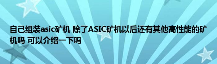 导读 大家好,小呗来为大家解答以上的问题自己组装asic矿机,除了ASIC矿机以后还有其他高性能的矿机吗,可以介绍一下吗这个很多人还不知道,现在让
