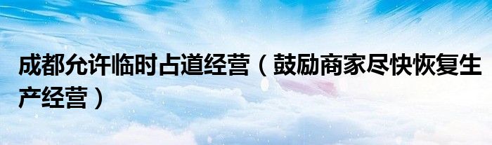 导读 大家好,综合小编来为大家讲解下。成都允许临时占道经营,鼓励商家尽快恢复生产经营这个很多人还不知道,现在让我们一起来看看吧!如今也是疫