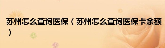 大家好,综合小编来为大家讲解下。苏州怎么查询医保,苏州怎么查询医保卡余额这个很多人还不知道,现在让我们一起来看看吧!