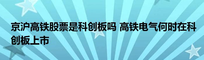 导读 大家好,小元来为大家解答问题。京沪高铁股票是科创板吗,高铁电气何时在科创板上市,这个很多人还不知道,现在让我们一起来了解下吧!