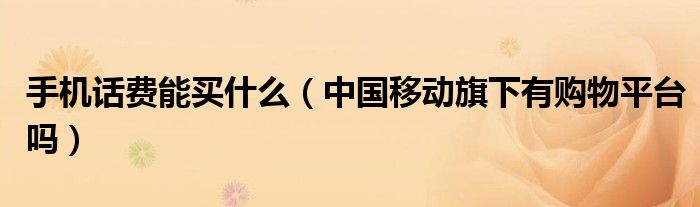 大家好,综合小编来为大家讲解下。手机话费能买什么,中国移动旗下有购物平台吗这个很多人还不知道,现在让我们一起来看看吧!