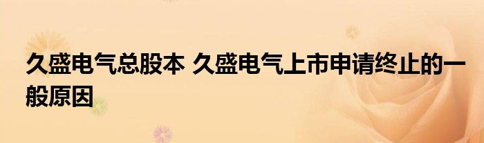 导读 大家好,小元来为大家解答问题。久盛电气总股本,久盛电气上市申请终止的一般原因,这个很多人还不知道,现在让我们一起来了解下吧!
