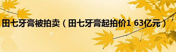 大家好,综合小编来为大家讲解下。田七牙膏被拍卖,田七牙膏起拍价1 63亿元这个很多人还不知道,现在让我们一起来看看吧!