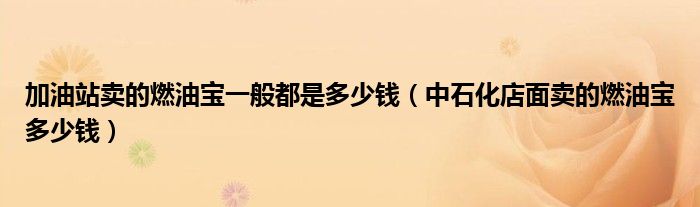 大家好,综合小编来为大家讲解下。加油站卖的燃油宝一般都是多少钱,中石化店面卖的燃油宝多少钱这个很多人还不知道,现在让我们一起来看看吧!