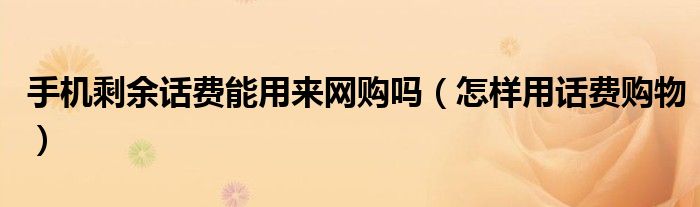 大家好,综合小编来为大家讲解下。手机剩余话费能用来网购吗,怎样用话费购物这个很多人还不知道,现在让我们一起来看看吧!