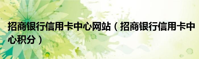导读 大家好,小卡来为大家解答以上问题。招商银行信用卡中心网站,招商银行信用卡中心积分很多人还不知道,现在让我们一起来看看吧!一、 招