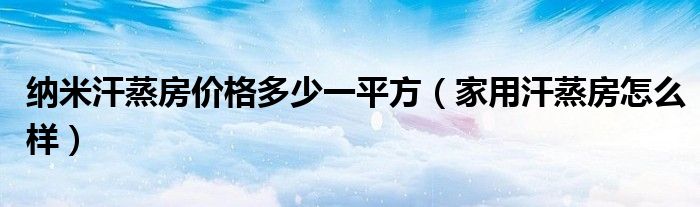 大家好,综合小编来为大家讲解下。纳米汗蒸房价格多少一平方,家用汗蒸房怎么样这个很多人还不知道,现在让我们一起来看看吧!