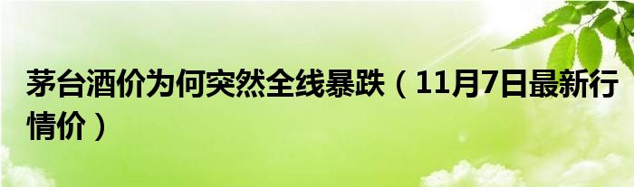 大家好,综合小编来为大家讲解下。茅台酒价为何突然全线暴跌,11月7日最新行情价这个很多人还不知道,现在让我们一起来看看吧!