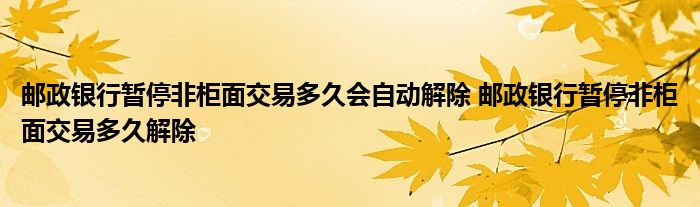 大家好,小元来为大家解答问题。邮政银行暂停非柜面交易多久会自动解除,邮政银行暂停非柜面交易多久解除,这个很多人还不知道,现在让我们一起来了解下吧!