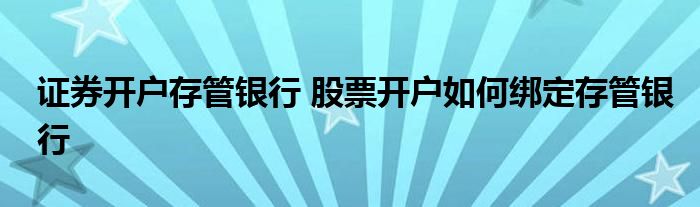 大家好,小元来为大家解答问题。证券开户存管银行,股票开户如何绑定存管银行,这个很多人还不知道,现在让我们一起来了解下吧!