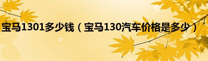 大家好,综合小编来为大家讲解下。宝马1301多少钱,宝马130汽车价格是多少这个很多人还不知道,现在让我们一起来看看吧!