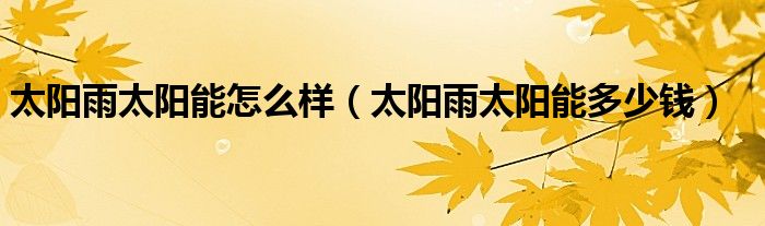 大家好,综合小编来为大家讲解下。太阳雨太阳能怎么样,太阳雨太阳能多少钱这个很多人还不知道,现在让我们一起来看看吧!
