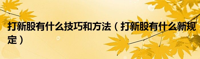 大家好,综合小编来为大家讲解下。打新股有什么技巧和方法,打新股有什么新规定这个很多人还不知道,现在让我们一起来看看吧!